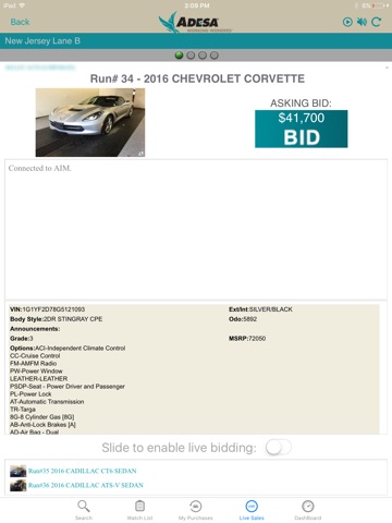 With the ADESA LiveBlock app, licensed auto dealers can participate in live auctions anywhere. View run lists on your mobile device and save vehicles on your Watch List. Place bids in real time, competing against dealers on the auction floor. Set AutoBid to bid on vehicles at different locations.