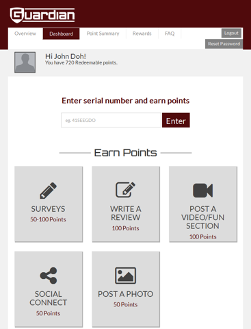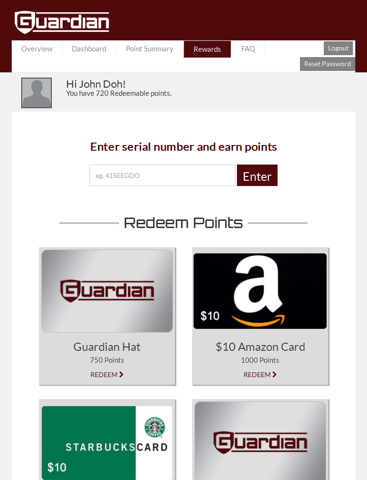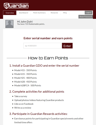 Guardian Rewards is designed around you, the professional operator installer. In addition to earning points for each Guardian GDO you install, you can earn from home through a variety of online activities as well and redeem points for gift cards and other great rewards. Signing-up is both free and easy, so register for Guardian Rewards today!