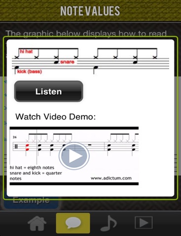 I have purchased many music creation & music lessons Apps so I know what is possible. This is an absolute waste of money. It is poorly laid out and extremely amateurish. My first clue was the App Support website which if I followed my previous criteria, I would not have purchased the App. The website did have some interesting possibilities about learning keyboard and that is what made me try the Drum lessons App, now I pass on that.
