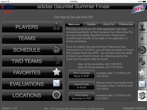 The Event Pro app provides college coaches and evaluators an electronic version of the coach’s packet, complete with searchable player, team and game layouts. The information is stored locally on an iOS device with the capability to update data when an internet connection is available. The Event Pro app provides coaches with the next generation of organizational tools to ensure the maximum efficiency of your time while attending this NCAA certified event.