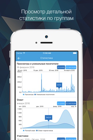 - Просмотр статистики групп(где она открыта) за разные периоды времени