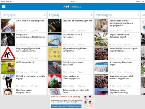 Hírvonal alkalmazásunkkal gyorsan és egyszerűen olvashatja az Adó Online portálon megjelenő híreket. A tudnivalók rövid kivonatai azonnal rendelkezésére állnak, a címekre kattintva pedig a teljes cikk elérhető. A Kezdőlapon minden kategóriából a négy legújabb hír tekinthető meg, de böngészhet a rovatokban is: Adó, TB-Nyugdíj, Munkaügyek, Cégvilág, Számvitel, Technológia, Konferenciák, Események témákban találhatóak meg mindig friss cikkeink! Kellemes és hasznos olvasást kíván a CompLex Kiadó Adó Online csapata