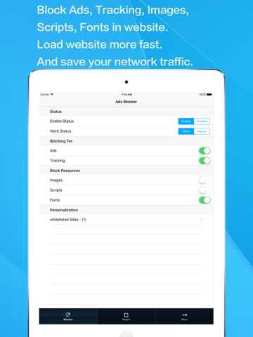 Ad Blocker is a content blocker for iPhone & iPad designed to block Adverts, Tracking, and more. It can speed up your surfing, save data and battery life.