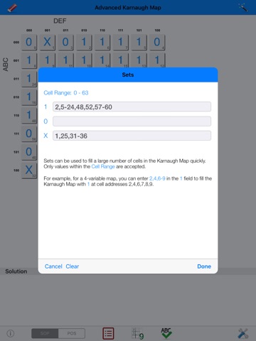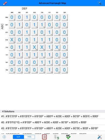 - Fully customizable Karnaugh Map orientation, variable names, operator symbols and expression format