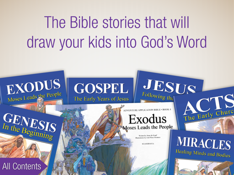 The Adventure Bible App is a complete series of 30 illustrated Bible books and audiobooks with all the great adventure stories of the Bible.