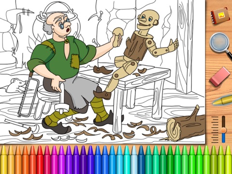 Lets your children dive into fascinating world of fairy tale "The Adventures of Pinocchio"! They can try role of Collodi and color personages on their own. There are 25 pictures which can be colored, sent by email, printed, saved to album or uploaded to Facebook what gives children almost unlimited opportunities.