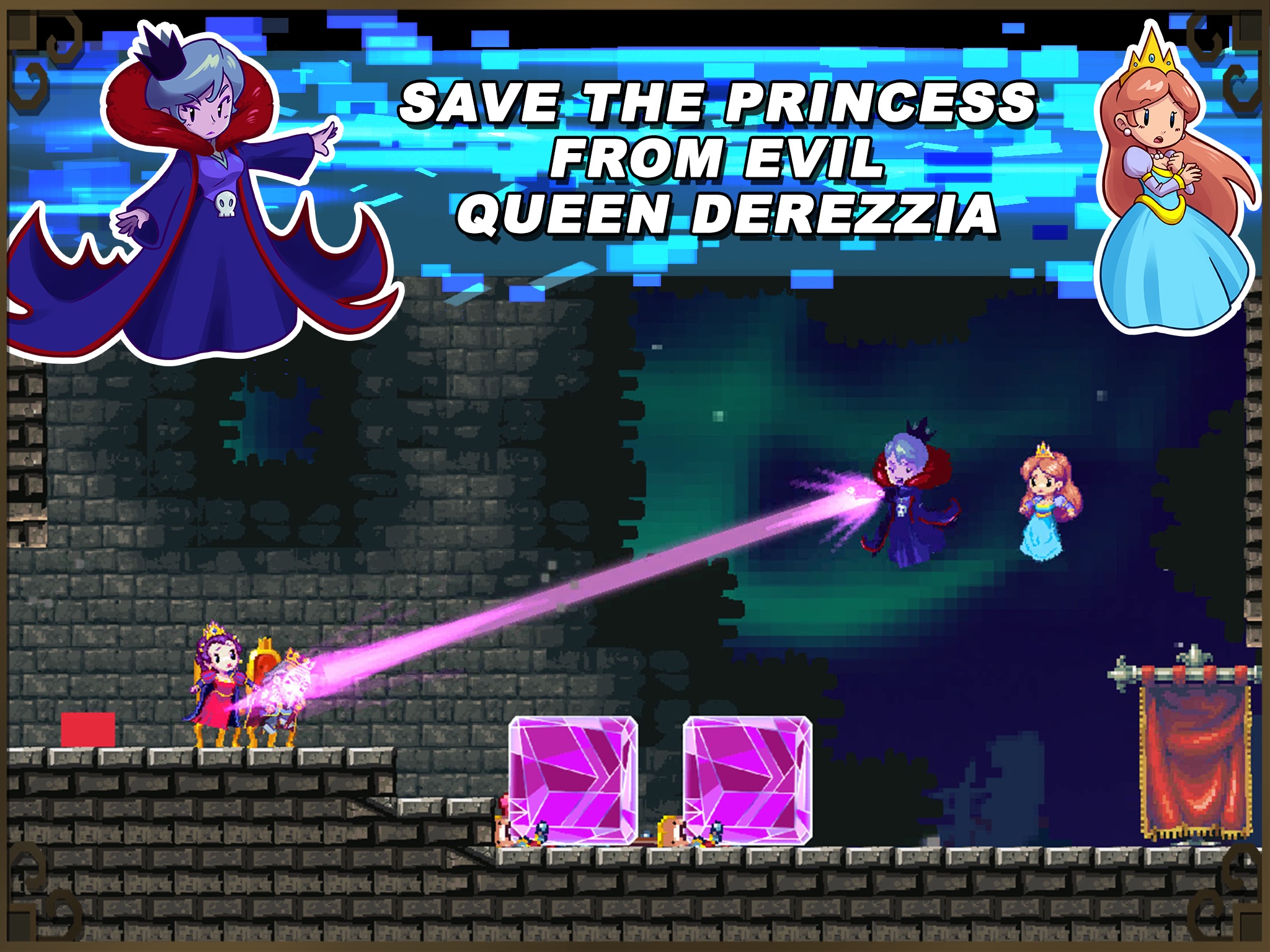 Adventures of Pip revitalizes the classic side-scrolling action platform genre. Pip -- the ultimate digital underdog – is a lowly single pixel in a 32-bit world who proves that you can’t judge a hero by the fidelity of his shaders. During the game, Pip gains the ability to evolve and grow by absorbing pixels from his fallen foes. Those same pixels can then be used to blast through environment puzzles and enemies, devolving Pip back to a single pixel. Players will explore five stylized worlds and experience up to 10 hours of epic adventure saving Pip’s village from the evil Queen DeRezzia.