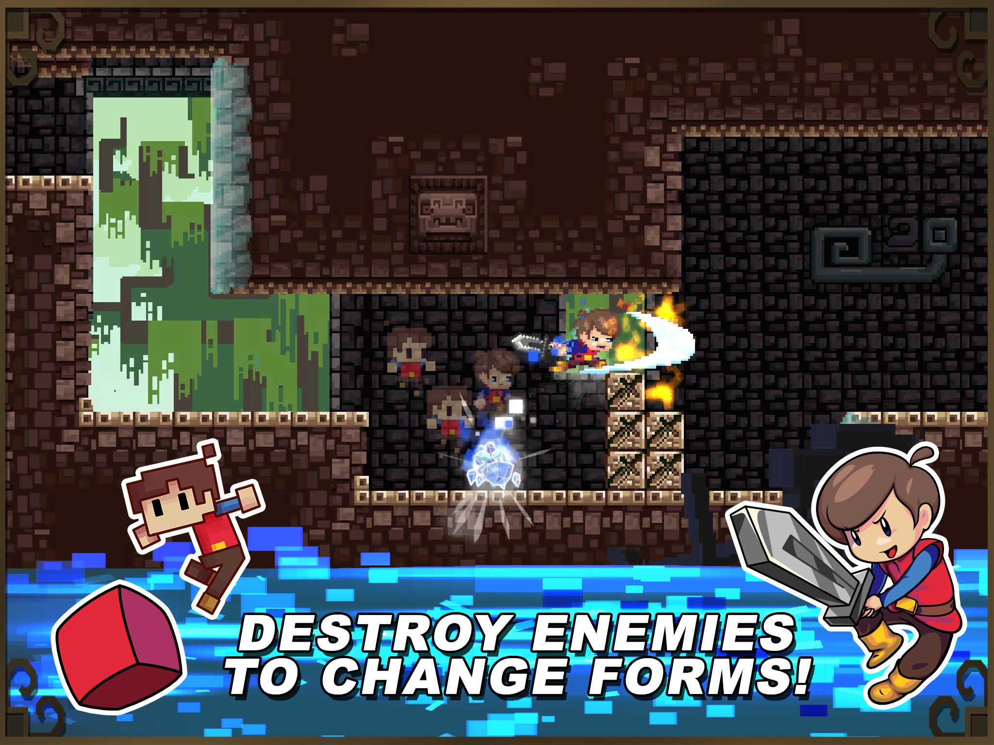 With three different forms, evolve and devolve Pip to solve puzzles and defeat enemies; each with their own weakness and strength that must be unraveled throughout the campaign.