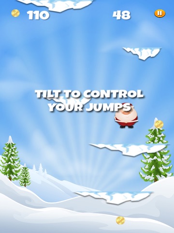 Jump from platform to platform, tilting your device to control the direction you jump. Collect as many coins as you can while flying though the icy sky of one of two worlds - Winter Wonderland or the North Pole. Use your coin points to unlock new friends of Santa and new worlds to play in.