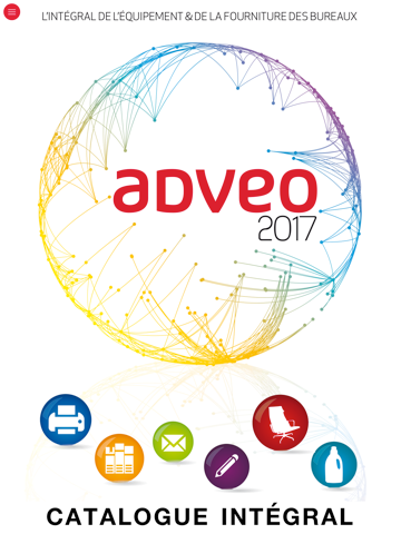 Avec plus de 14000 références et 300 grandes marques, le catalogue général ADVEO est la pièce maitresse du dispositif de communication du distributeur. C’est sur cet outil que va reposer la confiance des clients, car il présente les sélections les plus pertinentes et professionnelles proposées sur le marché de la fourniture et l’équipement de bureau. Avec une garantie de livraison rapide chez le distributeur ou chez ses clients. Pendant toute l’année, il sera la référence et le soutien permanent de l’équipe de vente du distributeur.