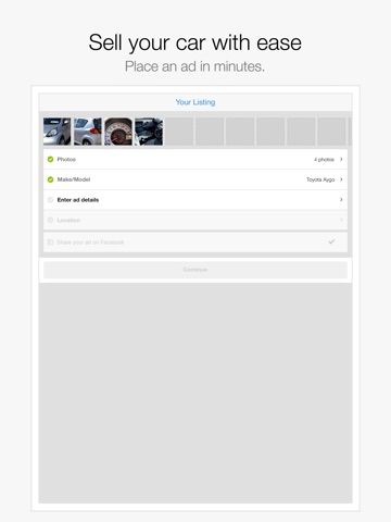 The fastest way to place a car ad is using the Adverts Cars app. Take photos, auto-populate all your car details by using our registration look-up, and have your ad live in no time. You can also use the Price Guide to help you settle on an asking price, and if you dont sell it, we wont even charge you for the ad.
