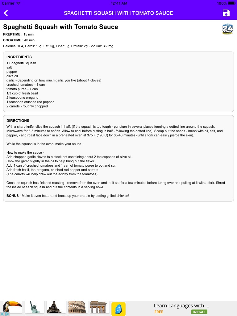 Every recipe in this app is focused on providing healthy meals with specific calorie and nutrition targets. Under the "24 Day Challenge" section you will be able to find great recipe ideas if you happen to be doing a "24 Day Challenge". All other recipes are simply very healthy options to help you mainatain your weight after you have reached your goals or after youve already completed a "24 Day Challenge".