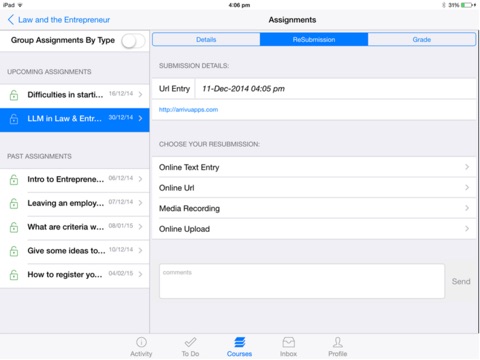 • View submissions and participate in comment discussions with your instructor