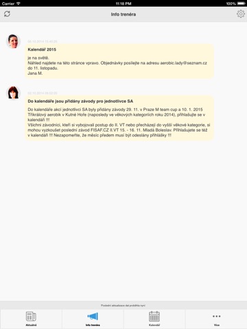 * Informace trenéra - důležité informace od trenérů klubu.
