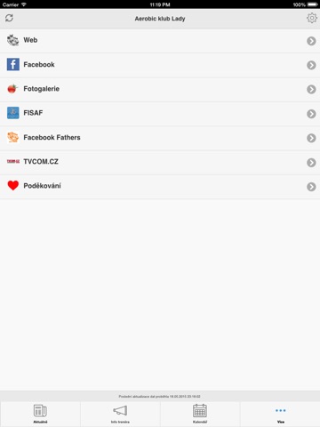 * Další informace - například možnost zobrazení facebookové stránky klubu (bez nutnosti registrace na facebook!), přechod na fotogalerii klubu, nebo další informační zdroje.