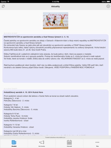 * Přehled aktualit - co se v posledních dnech a týdnech v rámci klubu událo, kdo se z členů klubu zúčastnil jakých akcí a případně s jakým výsledkem.