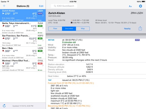 AeroWeather Lite provides quick and intuitive access to METAR and TAF for airports worldwide. Data can be shown in its original (raw) format or as fully decoded and easy understandable texts. AeroWeather Lite is helpful for weather preflight-briefings, but also to just get very precise weather. All weather data is cached for offline access. There are many settings for units and format of METAR/TAF available.