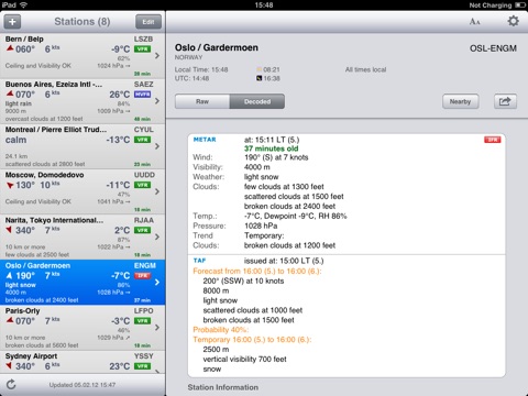 *** Current and precise weather conditions (METAR) and forecasts (TAF).