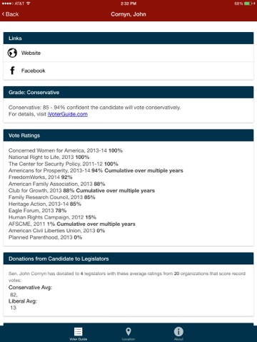 · Economic/social conservative grades (A to F) or a voter’s specific candidates