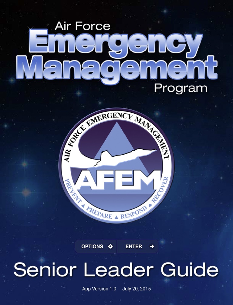 This digital version of the Air Force EM Program Senior Leader Guide is intended to familiarize and assist Air Force senior leaders with implementing the Air Force EM program at the installation level. This guide identifies how members of the installation and the Civil Engineer Squadron’s Readiness and Emergency Management Flight support the Air Force EM program across all levels of the installation.