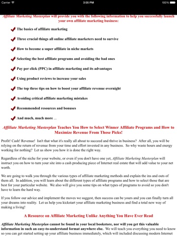 It is important to understand that Affiliate Marketing Masterplan is much more than just a book of basics. It also focuses on specific tried and proven methods from professional affiliate marketers, who have been there, done that, and are now reaping in their own cash from affiliate marketing. This book will walk you through all the crucial steps and cover all that you need to grasp for success. Begin treading the road to your own affiliate marketing empire today and start generating that income you need for a secure future!