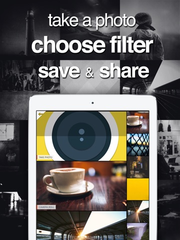 All you have to do is take a photo, choose filter, then save & share.