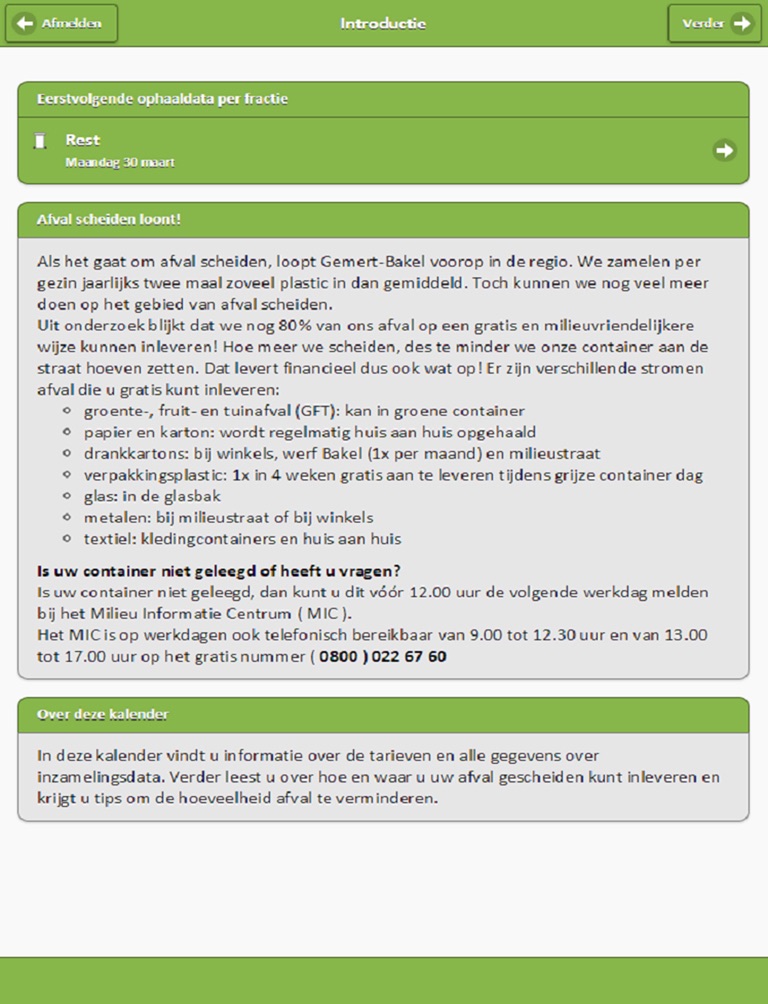 De Afvalwegwijzer is een App waarin u alle informatie aantreft over afval inzameling binnen uw gemeente op basis van uw adres gegevens.