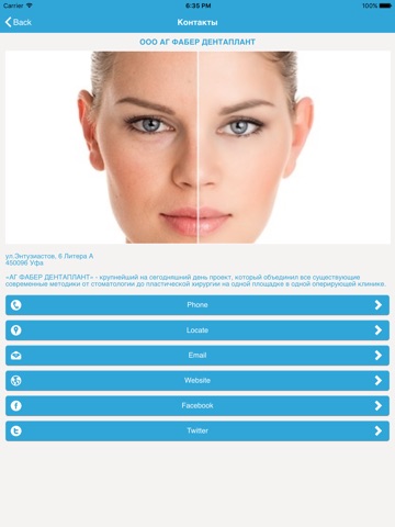 Это официальное приложение медико-стоматологического центра «АГ ФАБЕР ДЕНТАПЛАНТ» - крупнейшего на сегодняшний день проекта в Приволжском Федеральном Округе, который объединил все существующие современные методики от стоматологии до пластической хирургии на одной площадке в одной оперирующей клинике.