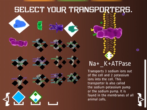 A microscopic world is in need of your help. Take control of 16 cell membrane transporters to move molecules and ions into and out of cells. Over twenty unique puzzles will take you through the tough world of cell membrane transporters. Use channels, co-transporters, and antiporters to help the cell reach goal concentrations. Our built-in Level Editor lets you take the reigns and make your own levels to challenge your friends!