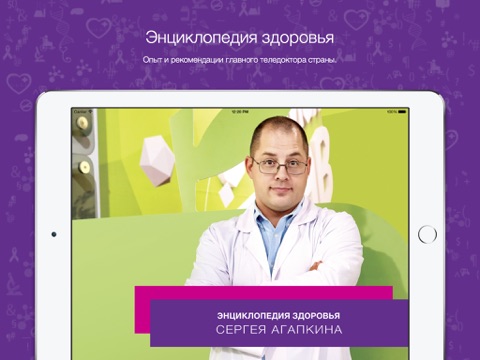 Дипломированный врач, тренер по йоге и ведущий программы «О самом главном» на телеканале «Россия» Сергей Агапкин создал приложение, которое представляет собой интерактивный справочник болезней, помогающий разобраться в симптомах, а также узнать, какое профессиональное лечение требуется в каждом конкретном случае и к какому врачу необходимо обратиться в первую очередь. Приложение «Энциклопедия здоровья Сергея Агапкина» содержит подробную информацию о самых распространенных болезнях, медицинских обследованиях и препаратах, а также рекомендации по питанию и физическим упражнениям, включая йогу.