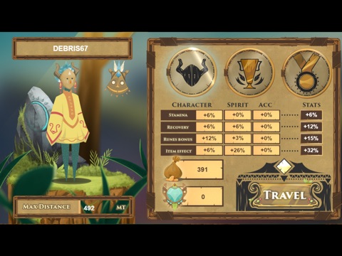 Make your way through "Agartha" The hidden land using your skills, with the power of ancient spirits and mystic characters reach the maximum distance possible and rank with the best!