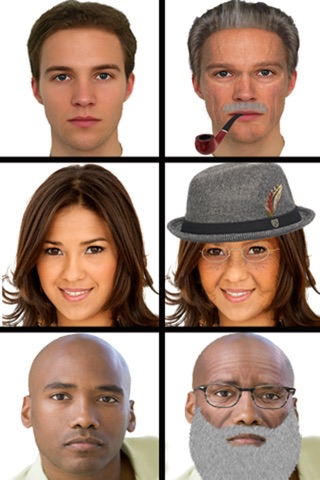 Simply take a photo of your face with the camera or choose an image from your photos library. Once you have a picture of your face there are several different face masks that have different wrinkles that you can choose from. Each of these masks are highly customizable so you can morph them to your face and choose how many wrinkles you want. By adjusting the editor you can define how deep the wrinkles are as well. You can also give yourself a beard or mustache and adjust how gray it is, along with how gray your hair goes. Edit your face however you want!