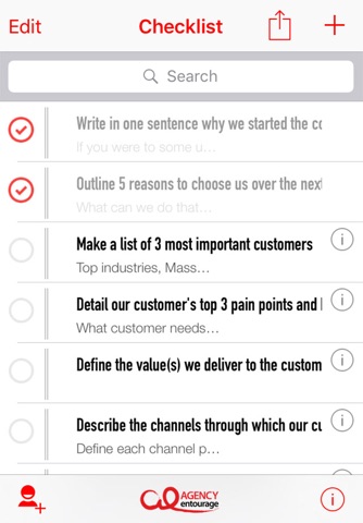 You can help your customers find you easier through this intelligent app. Agency Entourage takes a business approach to marketing and we believe in being efficient and following a systematic approach to building a marketing platform. Our checklist app helps you prepare for our Brand Workshop as well as other marketing initiatives by helping you stay organized through our to-do checklist.