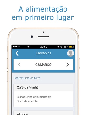 Saiba o que o seu filho está comendo com as atualizações diárias do cardápio da escola.