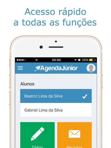 A Agenda Júnior é um aplicativo para você acompanhar o dia a dia dos seus filhos na escola.