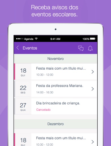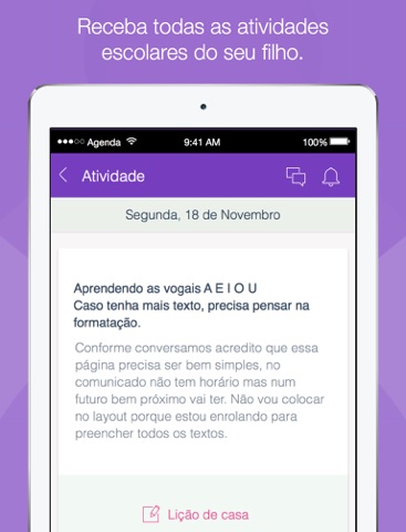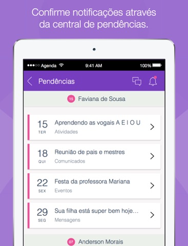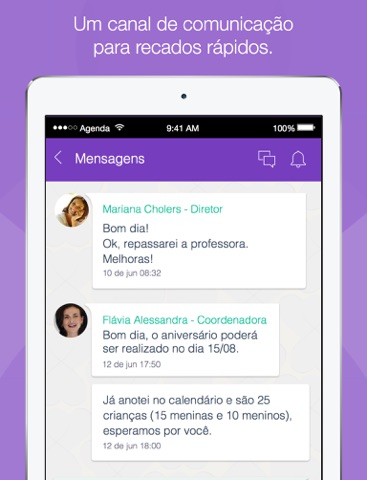 - Troque mensagens diretas com a escola, evitando desperdício de tempo e demora na resolução das pequenas demandas diárias, como, por exemplo, informar o motivo de uma falta ou tirar uma dúvida sobre um evento.