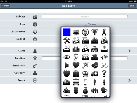 - Icon (you can select from a huge icon selection)