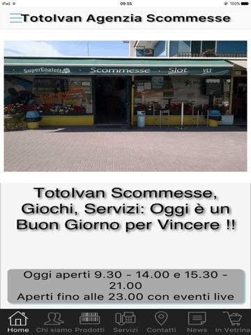 Questa App ti permette di scoprire il mondo delle scommesse, dei giochi e dei servizi che puoi trovare presso la Agenzia TotoIvan di Cavallino-Treporti, dal 1983 punto di riferimento del gioco legale e responsabile a Venezia.