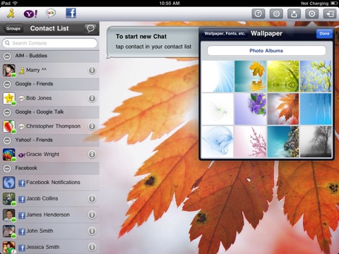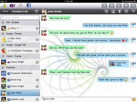 Das App ist sehr langsamm und unterstützt keine Multiple Logins, was die Nutzung auf iPad und iPhone gleichzeitig unnütz macht. Das können IM+, Trillian & Co. besser. Der Support antwortet nicht...