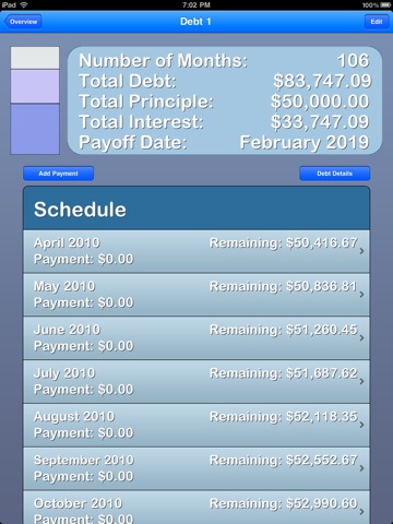 • Track multiple debts at once.