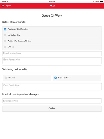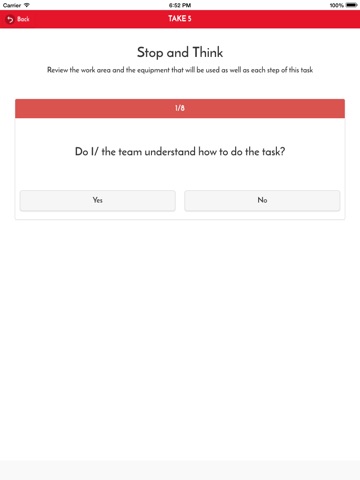 The app will enforce the ‘Take 5 by 5’ processes before the user/ supervisor starts any activity or work. It provides the users a platform which walks them through the ‘Take 5 by 5’ processes.