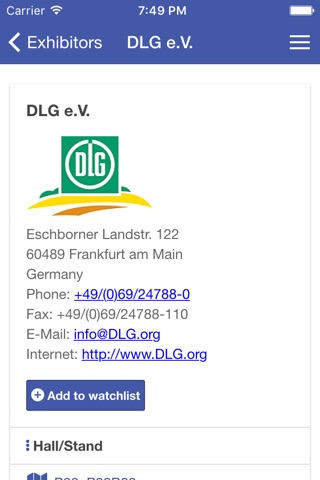 Die App enthält die Ausstellerdatenbank und funktioniert auch ohne Internetverbindung. Als registrierter User bei myAGRITECHNICA kann ich eine Auswahl von Firmen speichern und vom PC zum iPhone herunterladen oder umgekehrt. Das geht auch mit mehreren mobilen Geräten über einen Account. Die Hallenpläne richten sich nach dem Kompass aus, wenn man auf den Pfeil tippt. Ist zwar keine echte Navigation, aber dennoch hilfreich.