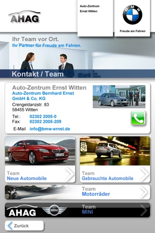 Ab sofort ist ein Update der AHAG iPhone App für Sie verfügbar. Neu ist vor allem die Erweiterung um die Standorte AHAG in Marl, Auto-Zentrum Bernhard Ernst in Witten, Cyran in Gronau, van der Moolen in Dorsten, AMW Wiesmann in Coesfeld und Wiesmann in Dülmen. Für alle Standorte finden Sie schnell den richtigen Ansprechpartner und aktuelle News und Angebote ... da sollte keine Frage rund um die BMW Welt offen bleiben!