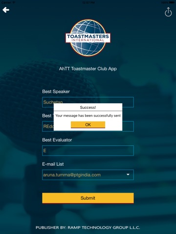 It gives you instant access to your AhTT Toastmaster Club App with convenience and ease, It features a built-in form that can be used to vote for the best performers in an event.