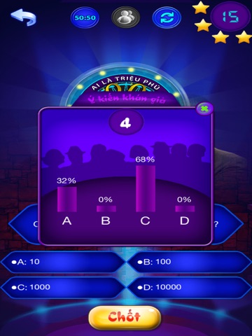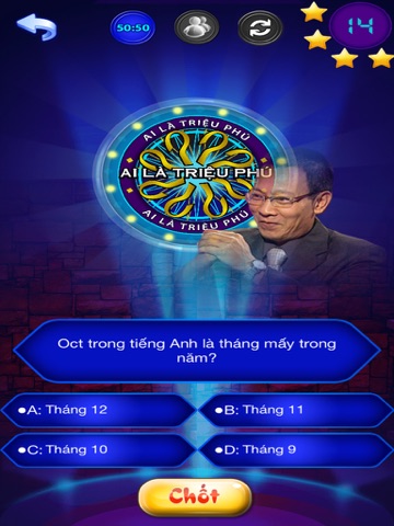 - Có 3 quyền trợ giúp là: 50/50, hỏi ý kiến khán giả và đổi câu hỏi .