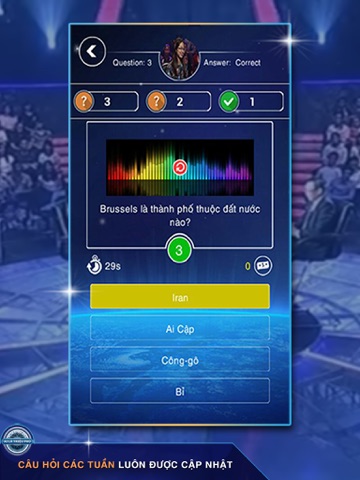 - Người chơi có thể biết được người chơi tuần vừa rồi trả lời đúng hay sai? Cũng biết được tên tuổi và hình ảnh của người chơi