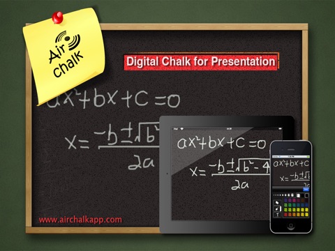 Air Chalk is a digital replacement of your traditional chalkboard or blackboard. You write your content on your iOS device, and the content is displayed to your audience using an LCD display or projector.