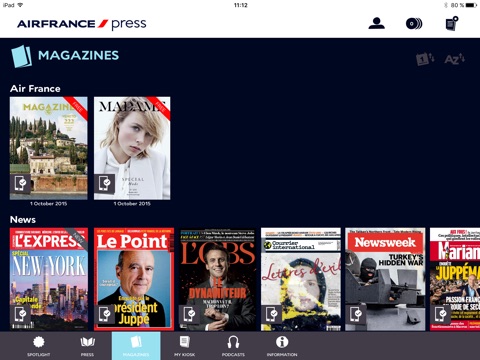 Maintenant, avec Air France, vous navez plus les journeaux "papier" mais pas non plus de journeaux en format numerique. Appli catastrophique, passez votre chemin!