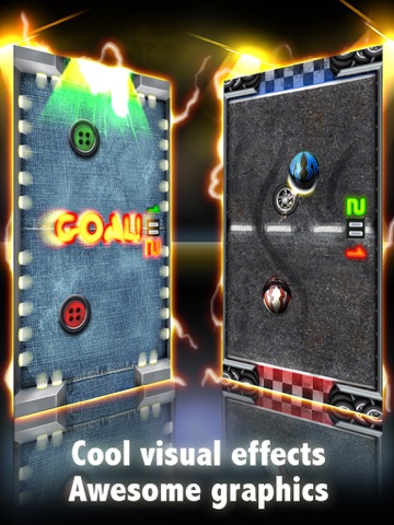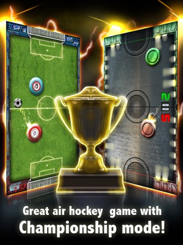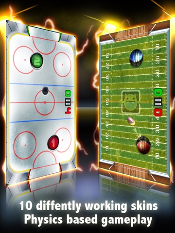 In the additional Championship Mode you can play against 4, 6, 8 or 10 opponents, human or computer controlled! The present version contains 10 skins, which not just look very different, but also plays different! An addictive air hockey sports game for every generation, with metal hockey, real hockey, classic air hockey, soccer (european football), american football, neon retro glow, christmas, valentine, racing and button hockey themes now, which will be expanded upon with updates.