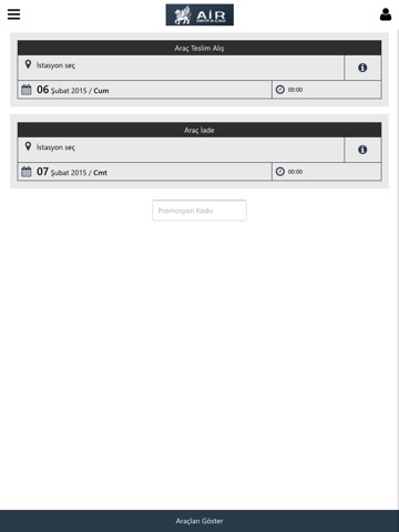 Air rent a car firmasının tüm Türkiye için mobil rezervasyon sistemi